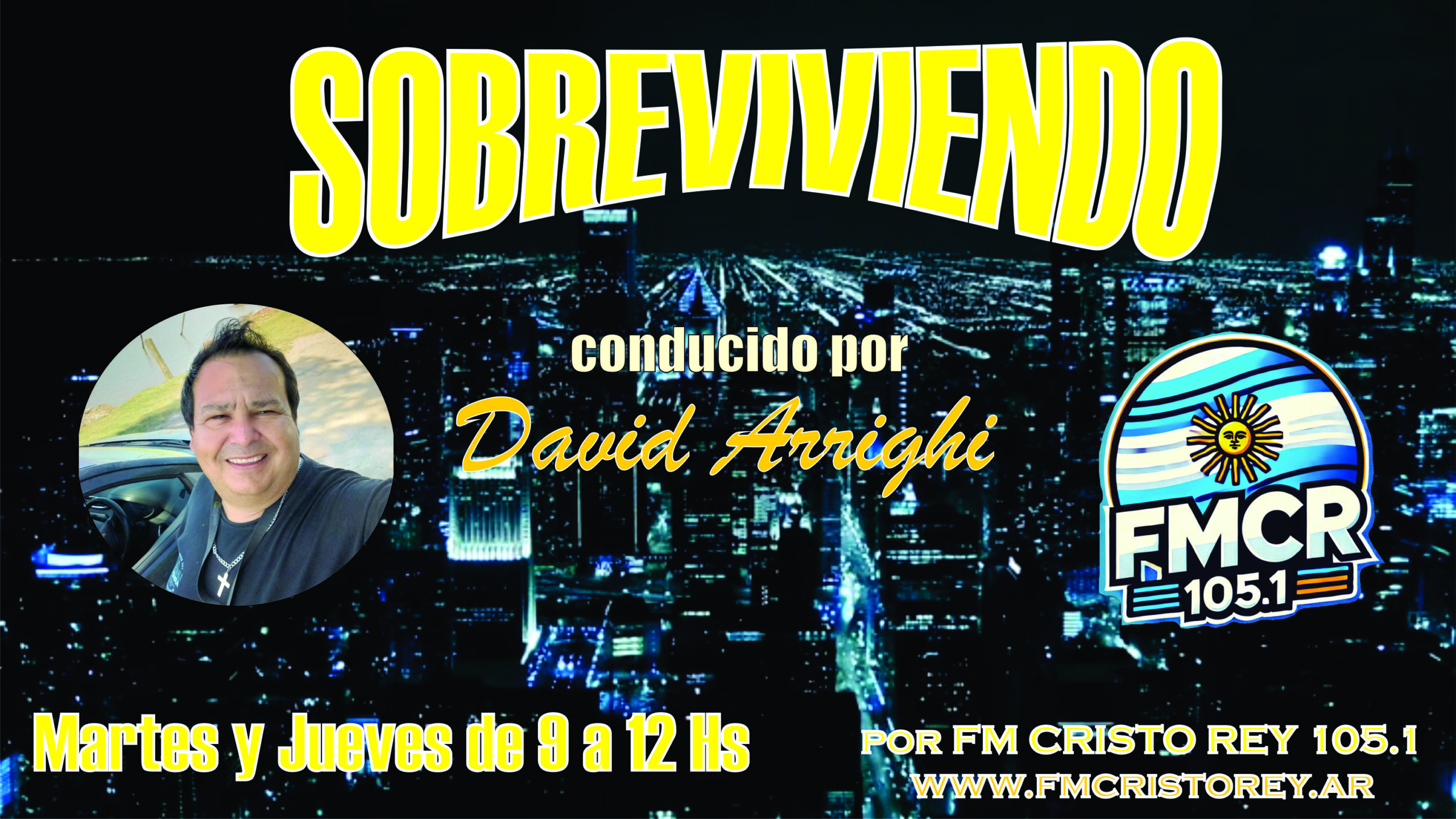 El reconocido Pastor y comunicador David Sebastián Arrighi vuelve al aire con un nuevo ciclo radial, esta vez a través de FM Cristo Rey 105.1, una emisora con amplia llegada en la zona sur del conurbano bonaerense. El programa lleva por nombre “Sobreviviendo” y se emite en vivo los martes y jueves de 9 a 12 hs.