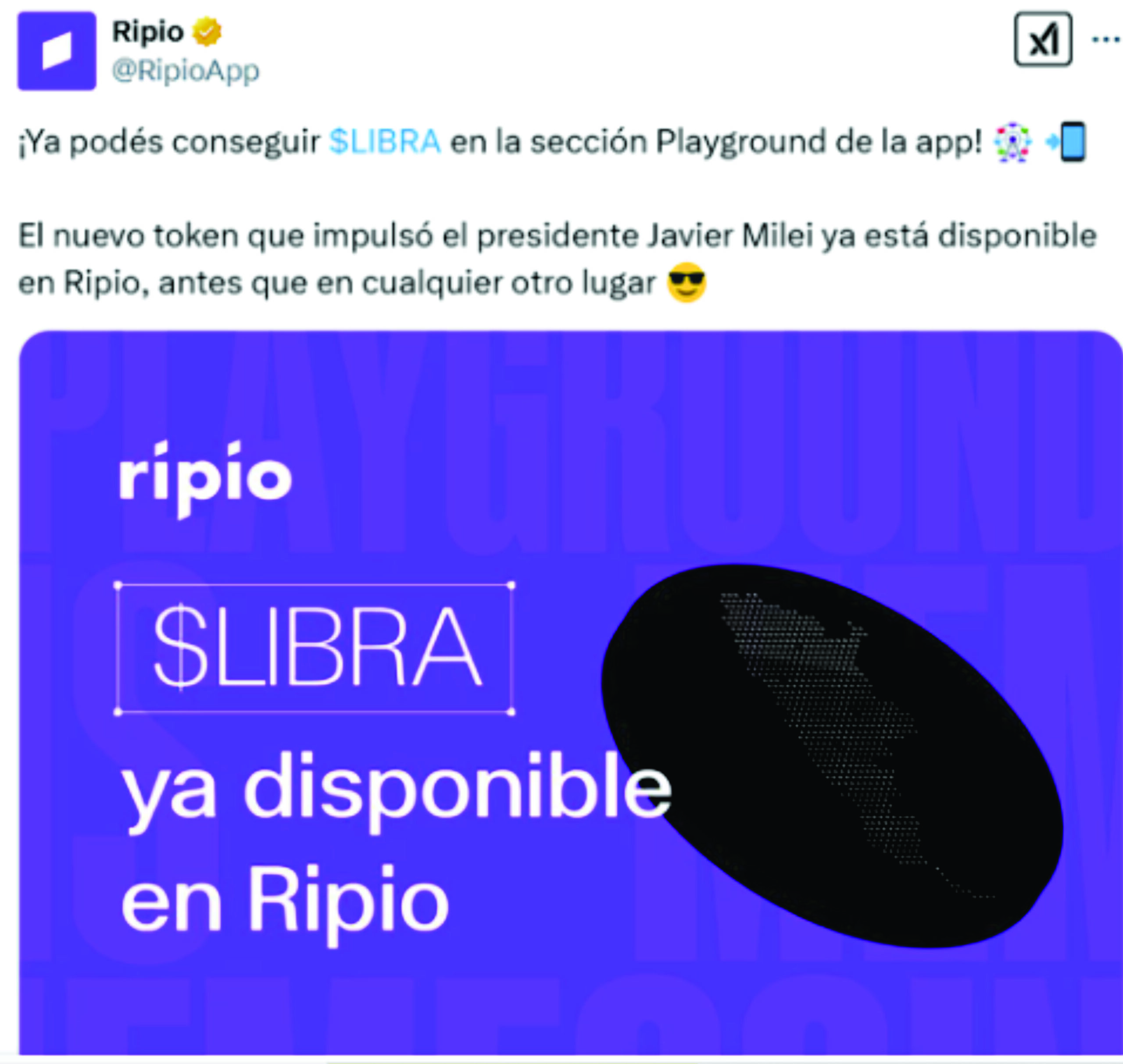 Pero esa regla tuvo una excepción: la billetera Ripio, con casi 4 millones de usuarios en el país, permitió el viernes 15 por la noche -y aún permite- comprar $LIBRA con un mecanismo similar al de Bitcoin, sin mayores dificultades.