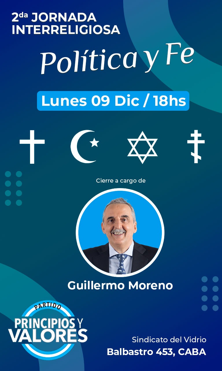 Este lunes 16 de Diciembre a las 18 hs en la sede del Sindicato del Vidrio de Balbastro 453 CABA, se realizara la segunda Jornada Interreligiosa organizada por el Partido Principios y Valores y el CEJUS (Consejo Evangélico Justicialista) que preside el Pastor David Sebastian Arrighi.